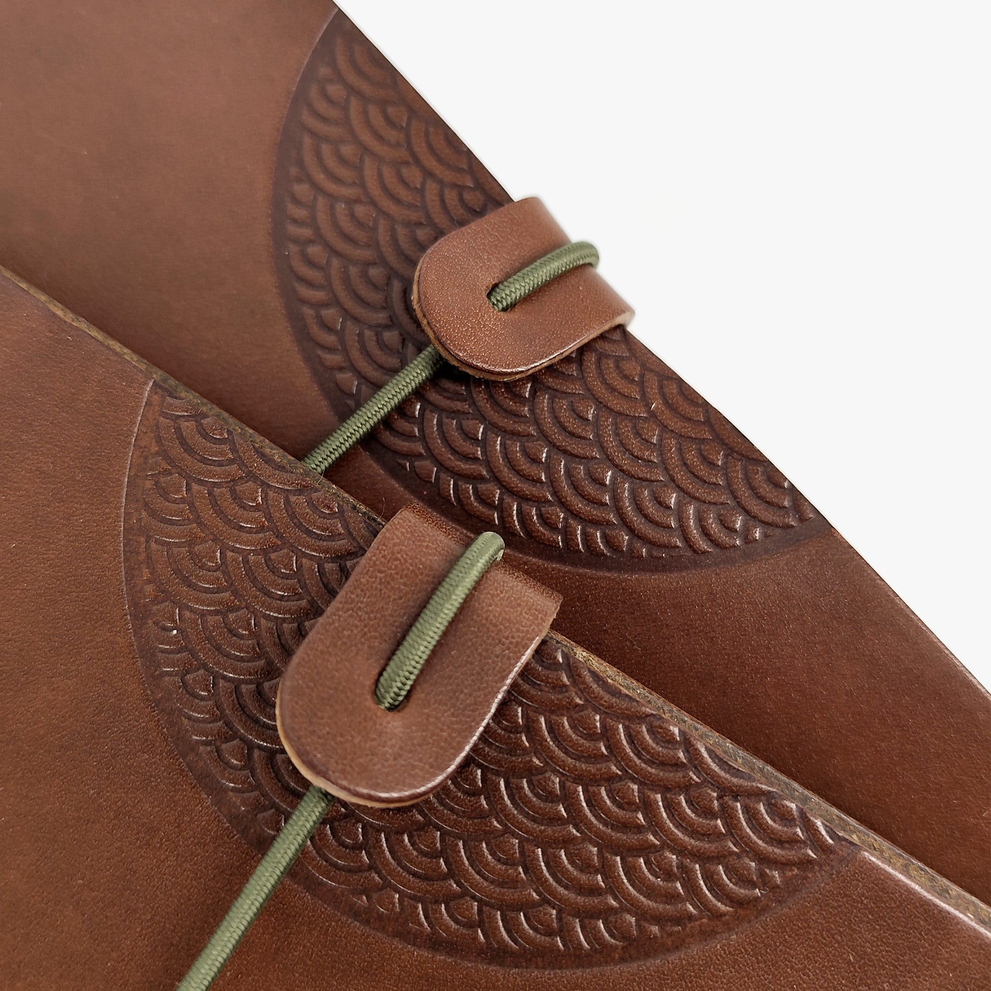 También hemos grabado un patrón japonés en la solapa llamado SEIGAIHA, que representa las olas del mar azul, el movimiento.