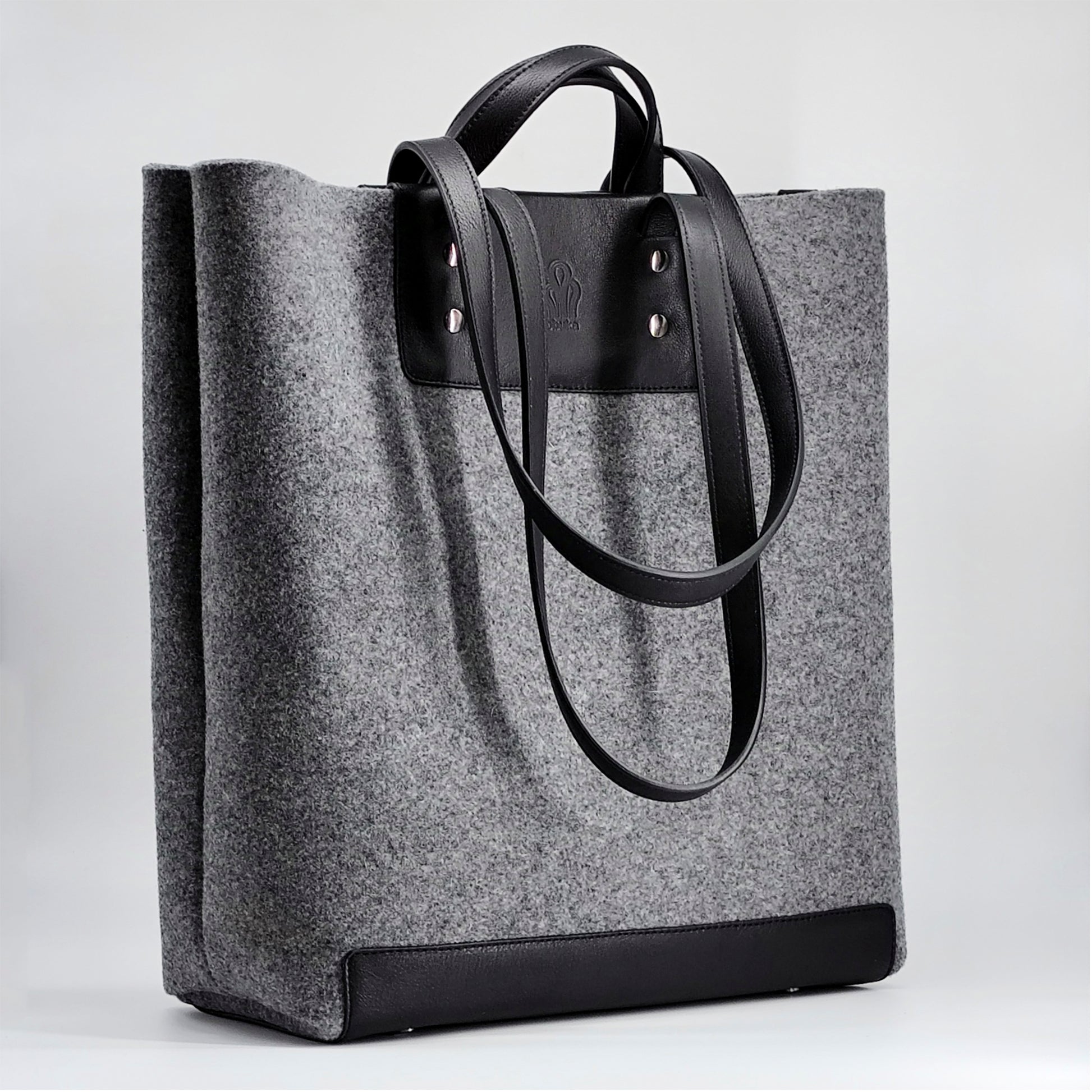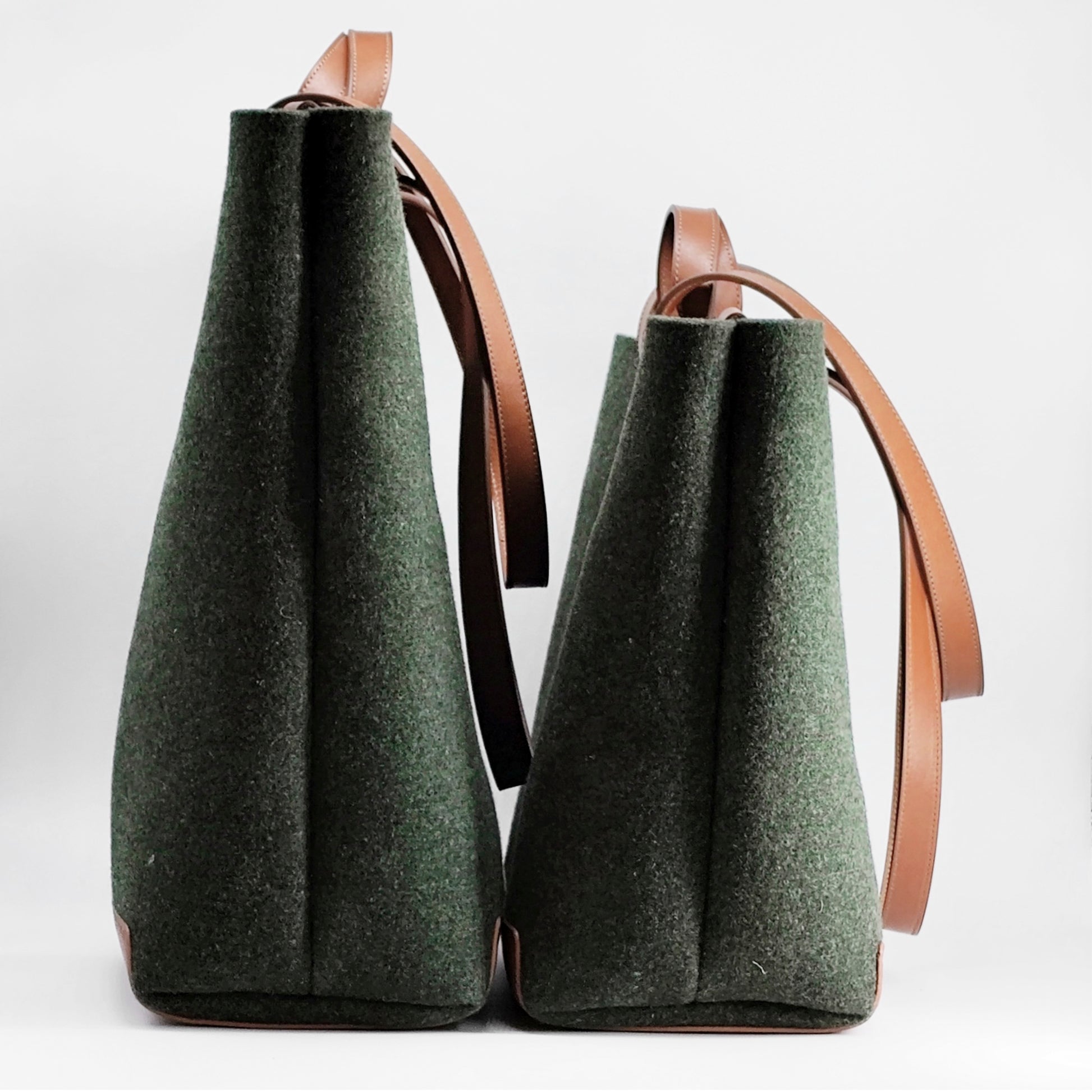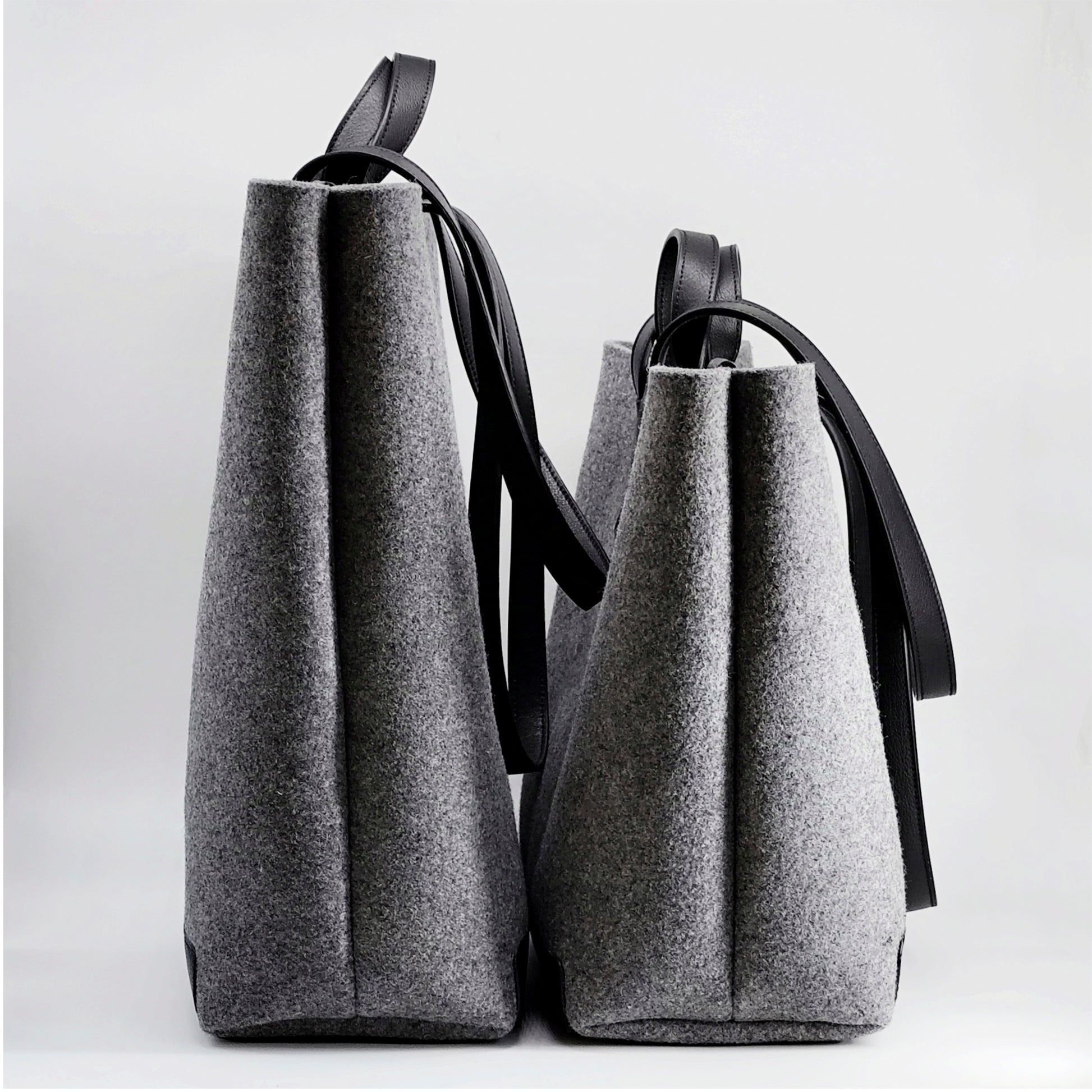 The worst thing about a big bag is its weight, we are aware of this, but we love big bags, so we have created a big and light bag, using leather for the load areas and the body in high grammage felt, it is light but resistant, you can carry whatever you want, we offer two sizes, large and médium, the size of the bag is the same, the only difference is the height.