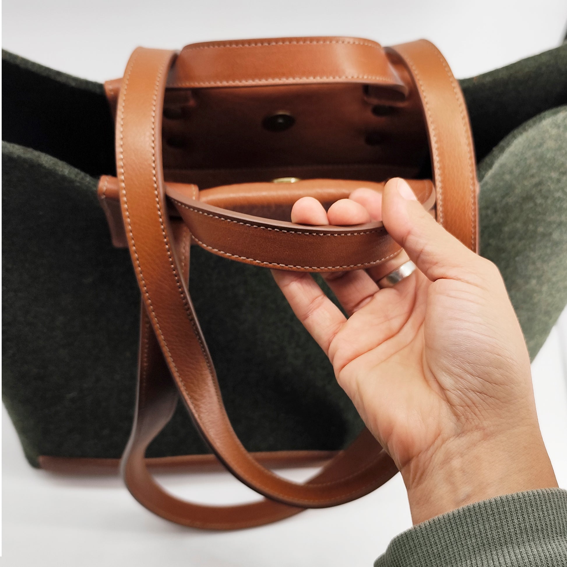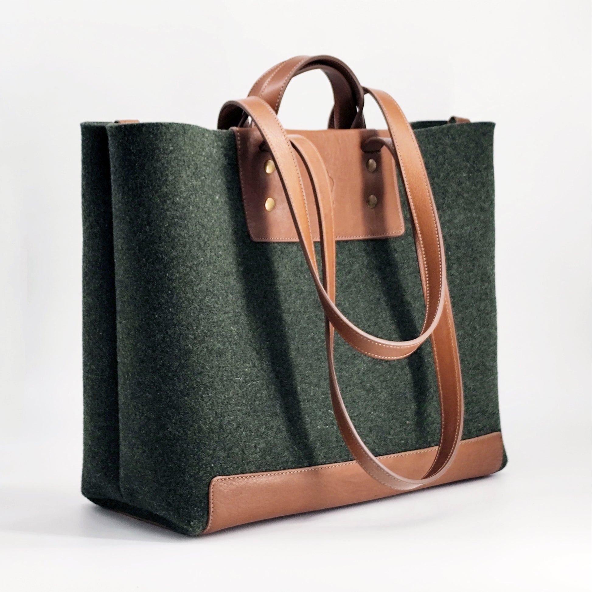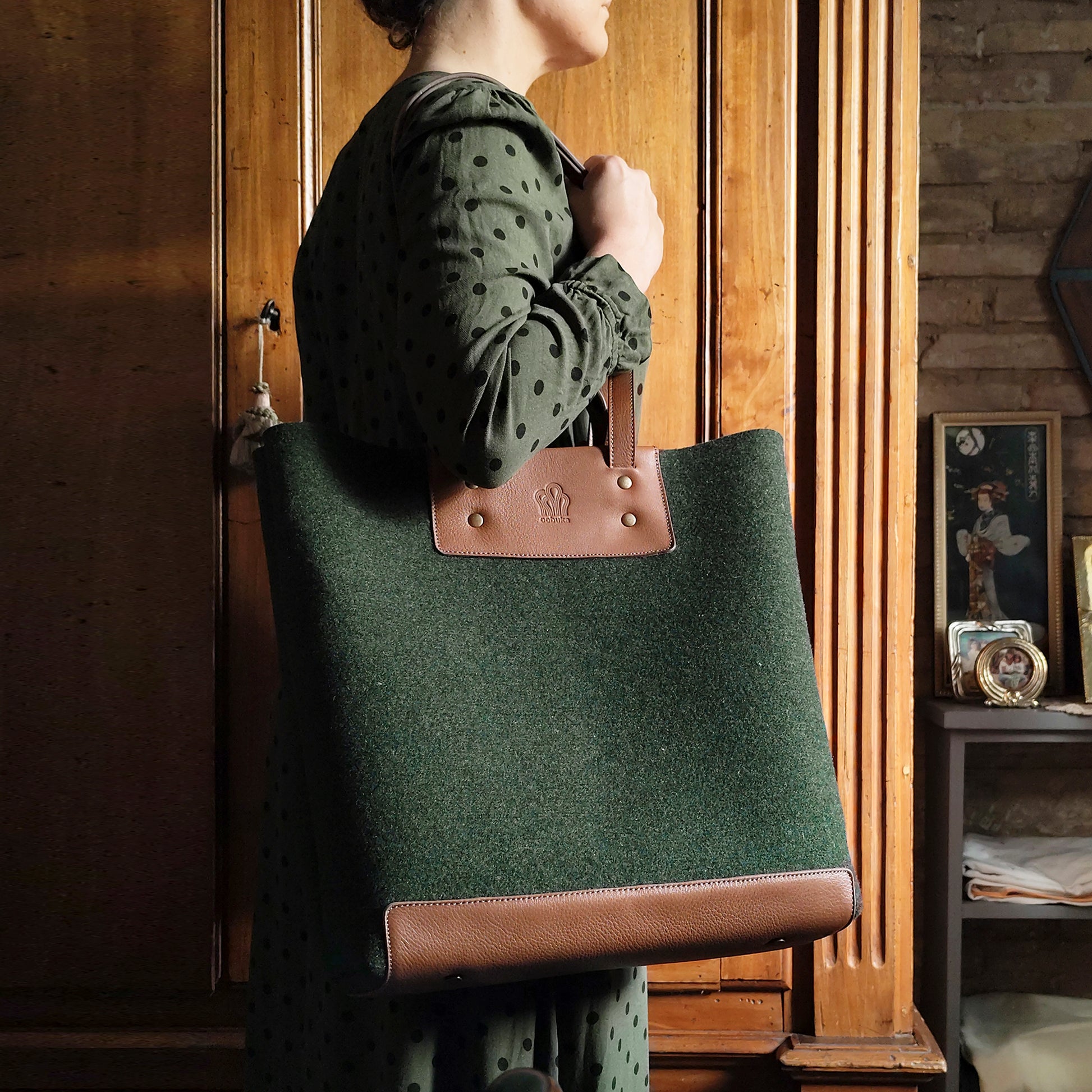 The worst thing about a big bag is its weight, we are aware of this, but we love big bags, so we have created a big and light bag, using leather for the load areas and the body in high grammage felt, it is light but resistant, you can carry whatever you want, we offer two sizes, large and médium, the size of the bag is the same, the only difference is the height.